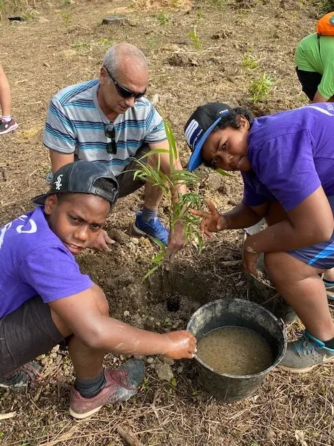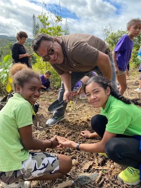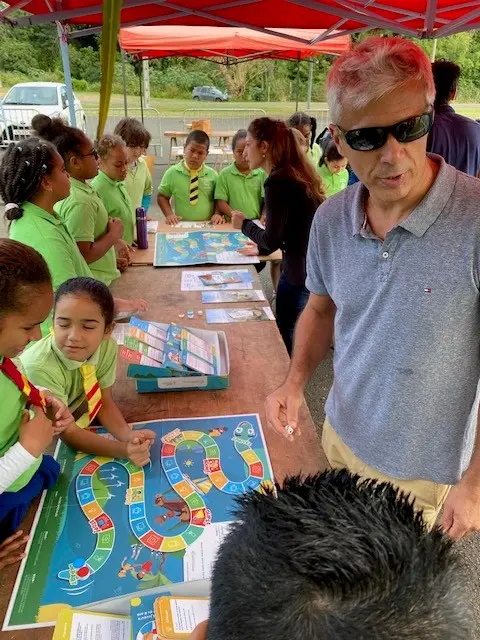 Cette journée a commencé par une plantation de 1.000 arbres au Parc des Grandes Fougères avec l’Association Caledoclean et les écoles de la Commune de La Foa. Plus de 80 enfants ont pu ainsi prendre conscience de l’absolue nécessité de préserver nos ressources forestières. Nous saluons à cette occasion la société BIOMONDE qui a contribuer à rendre cette matinée encore plus durable pour les scolaires. Dans le même temps, 3 autres classes des collèges de la commune ont pu découvrir toutes les facettes de cette filière, grâce à l’exposition des partenaires de cette opération devant le Centre Socio-Culturel de La Foa. Ils ont également pu s’initier à la maîtrise de leur consommation d’énergie en jouant au jeu TRICOLO sur la stand de l’ACE.