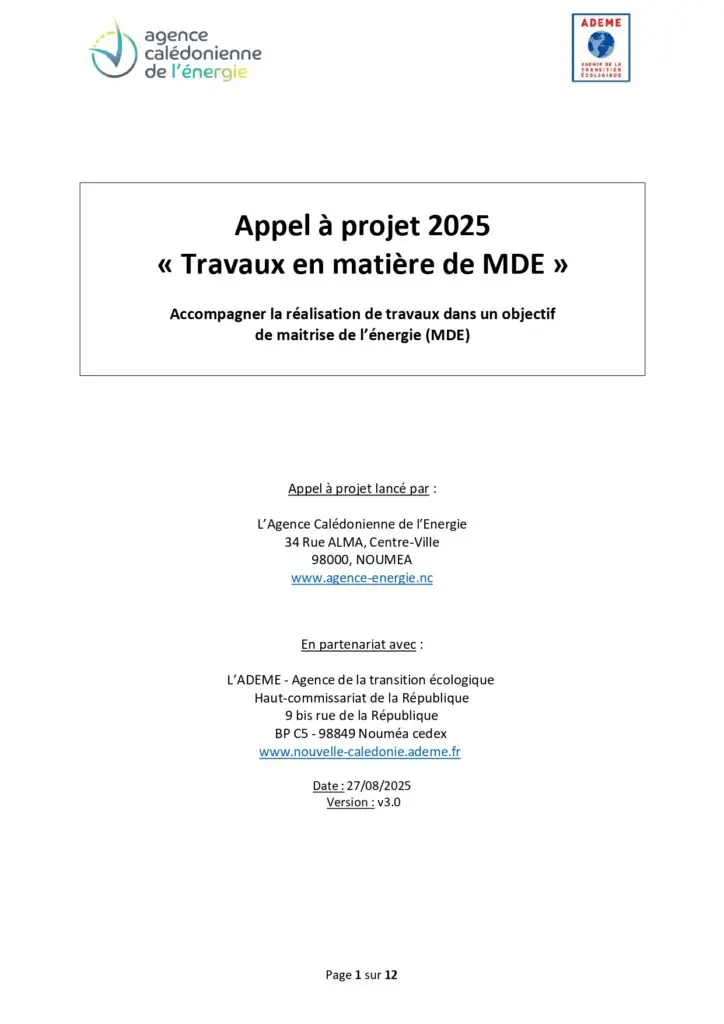 Appel à Projet – Réalisation de travaux en matière de maitrise de l’énergie (MDE)